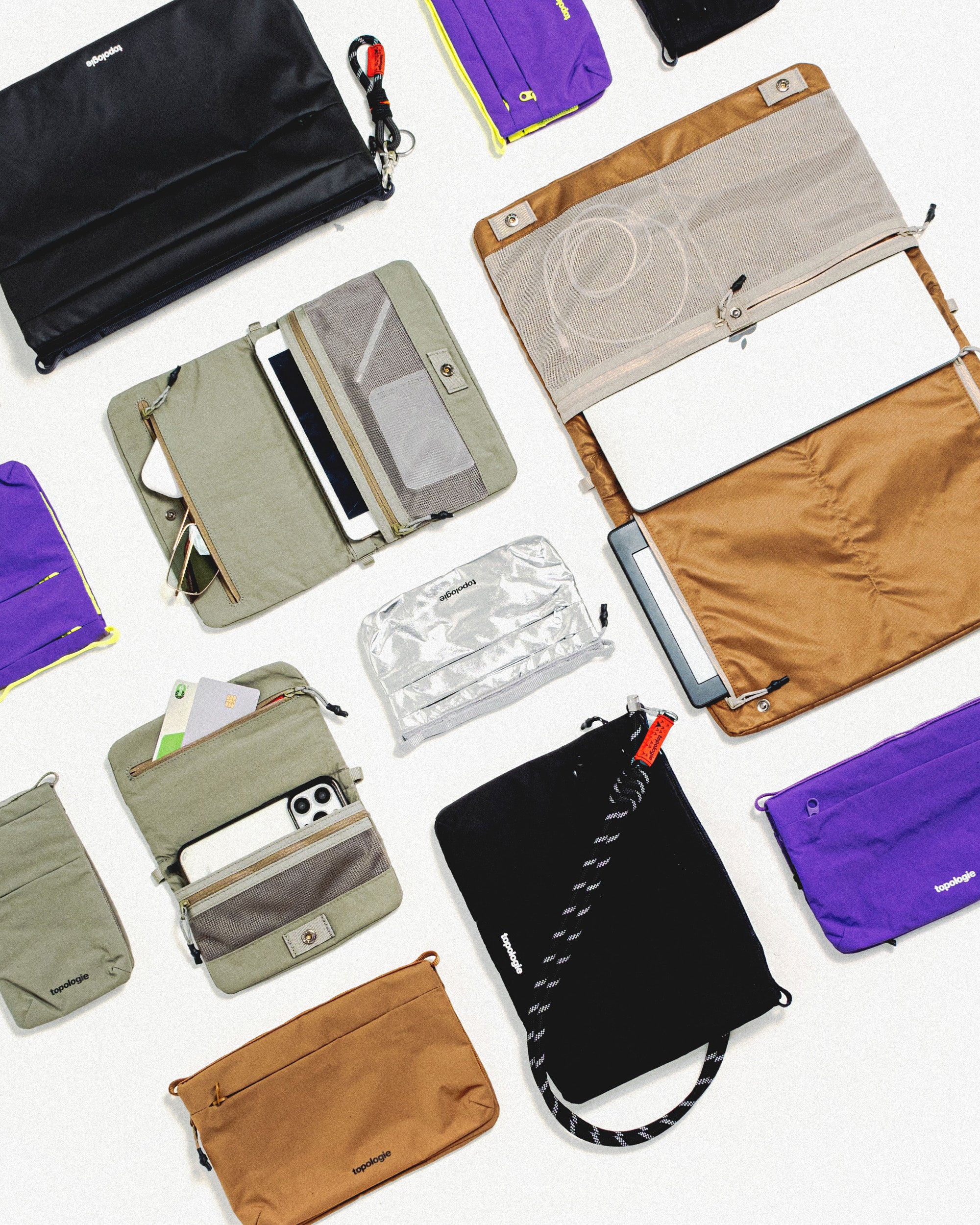 Topologie Wares System™ มีสายสะพายแบบถอดเปลี่ยนได้มากกว่า 120 แบบทุกสไตล์และขนาด และมีผลิตภัณฑ์ให้เลือกมากกว่า 1,000 แบบ ช่วยให้ผู้เดินทางในเมืองสามารถร่วมกันสร้างสรรค์และคัดสรรอุปกรณ์จำเป็นสำหรับการพกพาที่เป็นเอกลักษณ์ ขณะเดียวกันก็สามารถเก็บอุปกรณ์ประจำวันของตัวเองไว้ใกล้ตัวได้